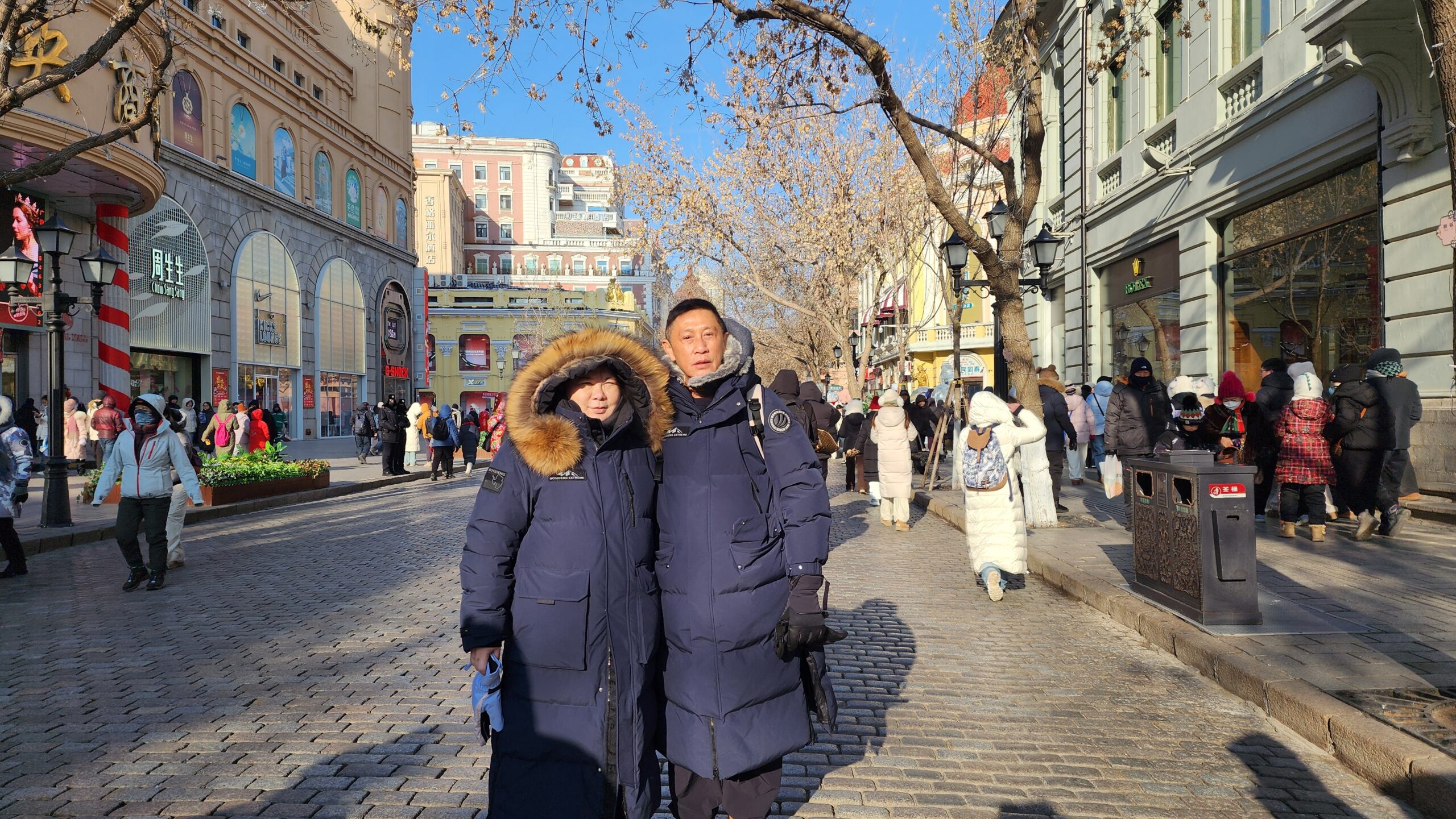 ทานอาหารเสร็จไปไหนกันต่อ ไกด์ถามเพราะในโปรแกรมไม่มีต้องรอตอนเย็นเทศกาลน้ำแข็ง ผมบอกพาพวกผมไปเดินห้างก่อนอยากเห็นบรรยากาศเมืองฮาร์บิน เจอร้านค้าเล็กๆ บนถนนจงหยางแล้ว อยากเห็นห้างใหญ่บ้าง ไกด์ท้องถิ่นบอกคนขับรถ ไม่ต้องถามว่าไปไหนผมไม่เข้าใจอยู่แล้ว แวะมาห้างสรรพสินค้าคณะผมเดินเข้าห้างผมเดินแป๊บเดียว บอกว่าจะขอเดินด้านนอกอยากเห็นอื่นๆ เท่าที่มองรอบตัวระหว่างเดิน ที่ตั้งอยู่ริมแม่น้ำซงฮัวเจียง แต่เป็นคนละจุดที่ไปตอนเช้า จุดสนใจคือ ร้านแผงลอย ขายอาหารเสียบไม้แอบถ่ายไม่กล้าเดินเข้าไปใกล้ กลัวพ่อค้าชวนคุยจะงง ฮา เพราะฟังไม่รู้เรื่องและก็ไม่ใช่สาระสำคัญอะไร