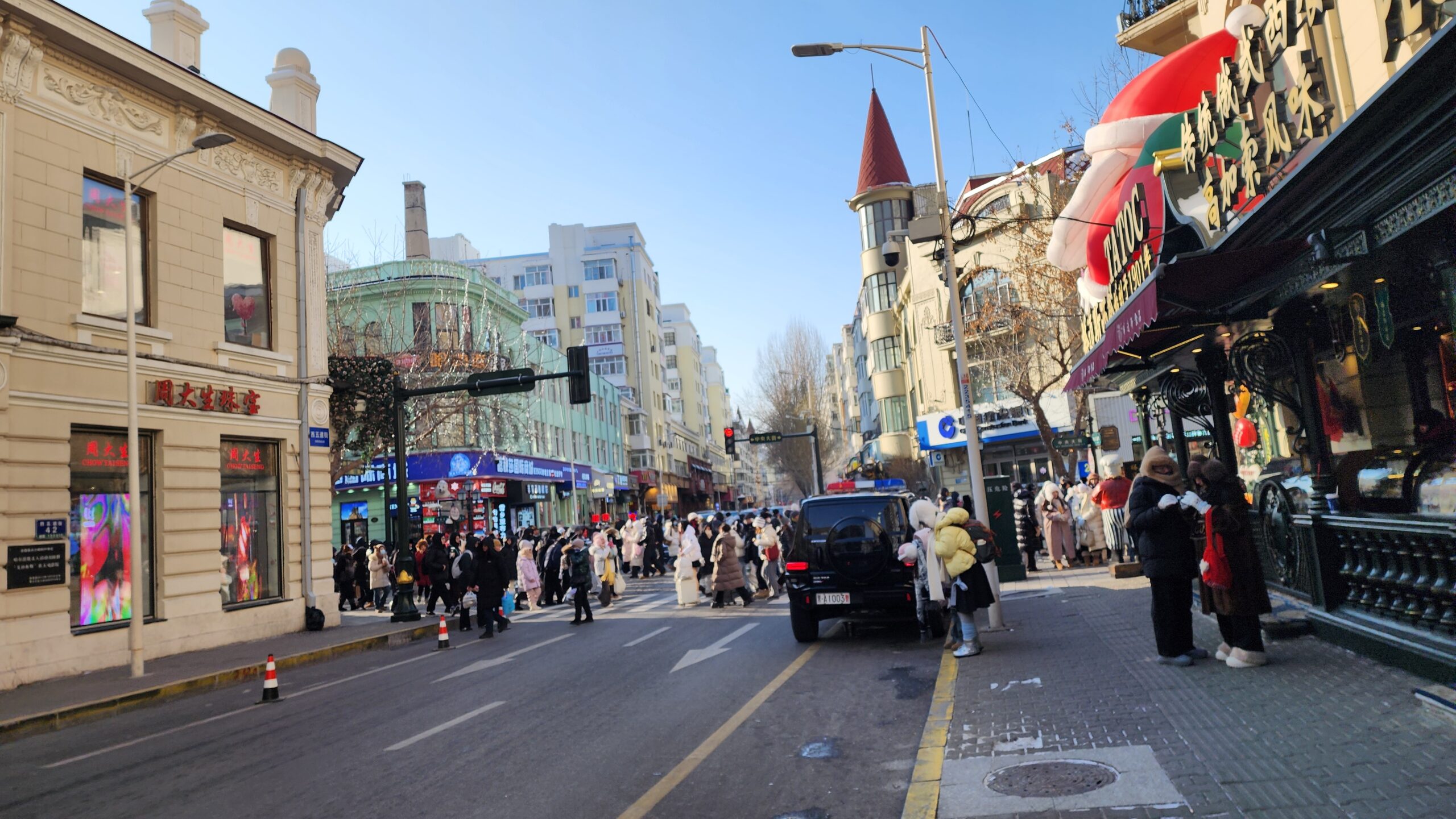 ตอนนั้นไม่รู้ระยะทางว่าเดินไกลแค่ไหนไม่เหนื่อย ด้วยอากาศเย็นเดินเพลิน จนมาสุดถนนข้ามสี่แยก ไกด์ชี้ให้ดูเป็นร้านท้องถิ่นเก่าแก่ ชื่อร้านหม่าเตี๋ยเอ่อร์ (Madieer / 马迭尔) ขายอาหารสไตล์ยุโรป โดยเฉพาะไอศครีม ที่สำคัญไกด์จะชวนพวกผมทานไอศครีม แถวนั้นท่ามกลางอุณหภูมิติดลบน่าจะ -19 ไม่ได้วัด จับโดยใช้ร่างกาย บอกตามตรงไม่หาญกล้าพอ แล้วอีกอย่างผมเป็นคนไม่กินไอศครีมแม้แต่ในไทย ก็กินน้อยมากเพราะความหวาน ซึ่งผมไม่ชอบหวานคนดื่มกาแฟดำ มากว่า 30 ปีไม่เคยใส่น้ำตาลก็แบบนี้